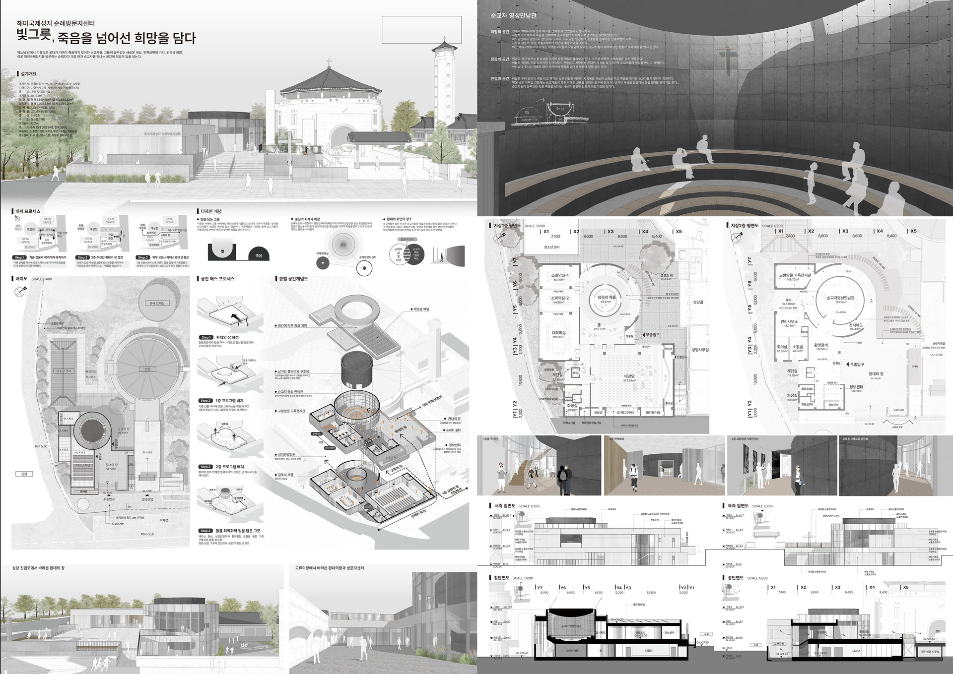 하느님 안에서 기쁨으로 살다가 기꺼이 죽음까지 맞이한 순교자들. 그들이 꿈꾸었던 새로운 세상, 인류보편의 가치, 위안과 희망, 이곳 해미국제성지를 방문하는 순례자가 가장 먼저 순교자를 만나는 공간에 희망의 빛을 담는다.