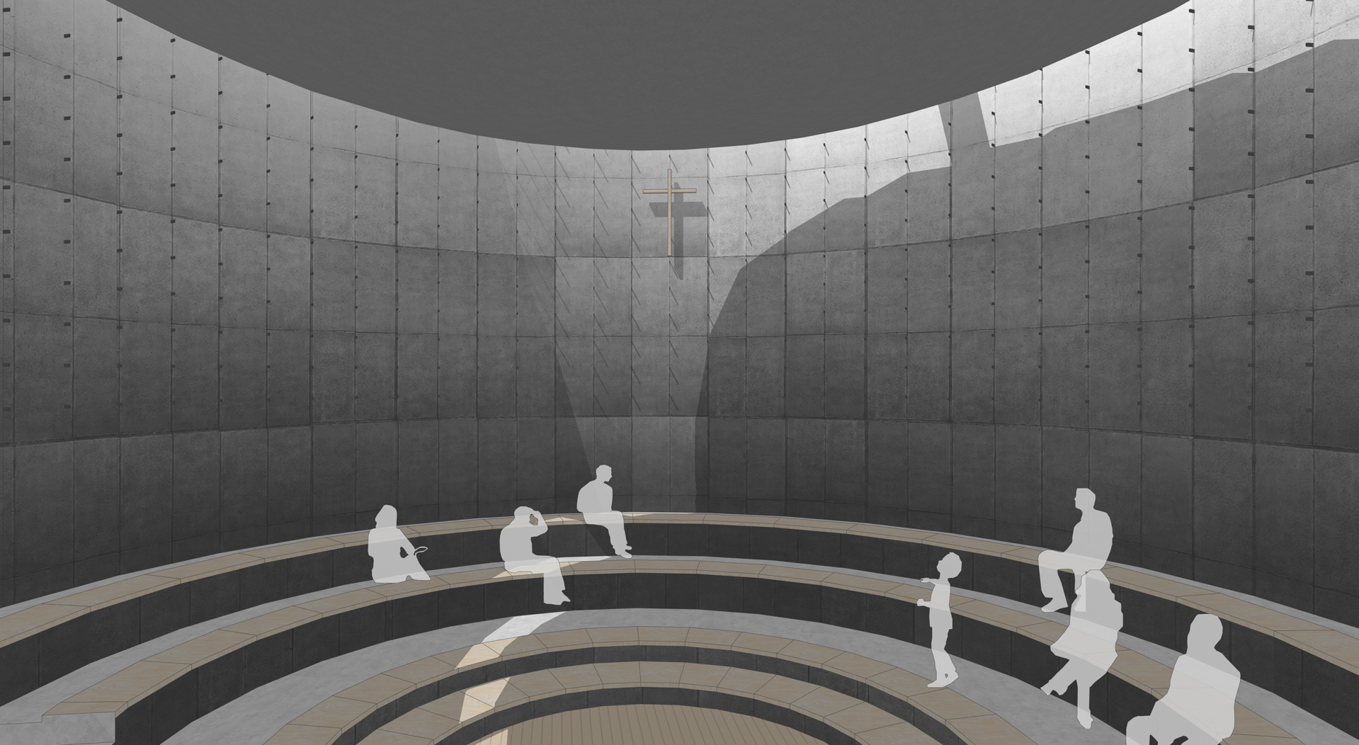하늘로 부터 공간의 벽을 타고 퍼지는 빛은 암울한 박해의 시기에도 하늘의 소망을 두고 죽음을 맞이한 순교자들의 빛이며 희망이다. 벽에 남은 거푸집 긴결재는 순교자들이 겪은 박해의 고통을 뜻함과 동시에 안과 밖, 성지와 세상을 연결하는 연결고리를 뜻하기도 한다. 순교자들이 꿈꾸었던 것은 죽음을 넘어선 세상과 연결된 인류의 희망이었을 것이다.
