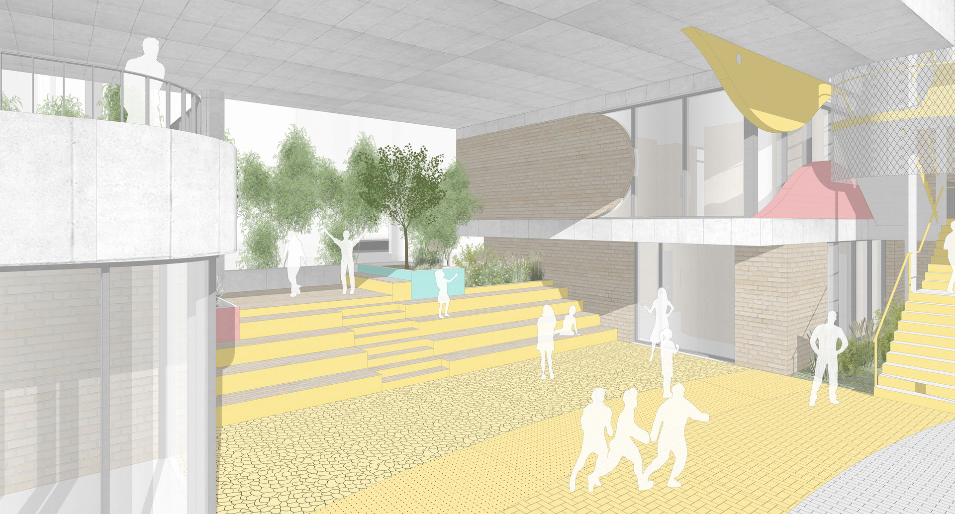 일어나게 하고 세대별 사용자를 연결하는 상징적 공간으로 작동한다.