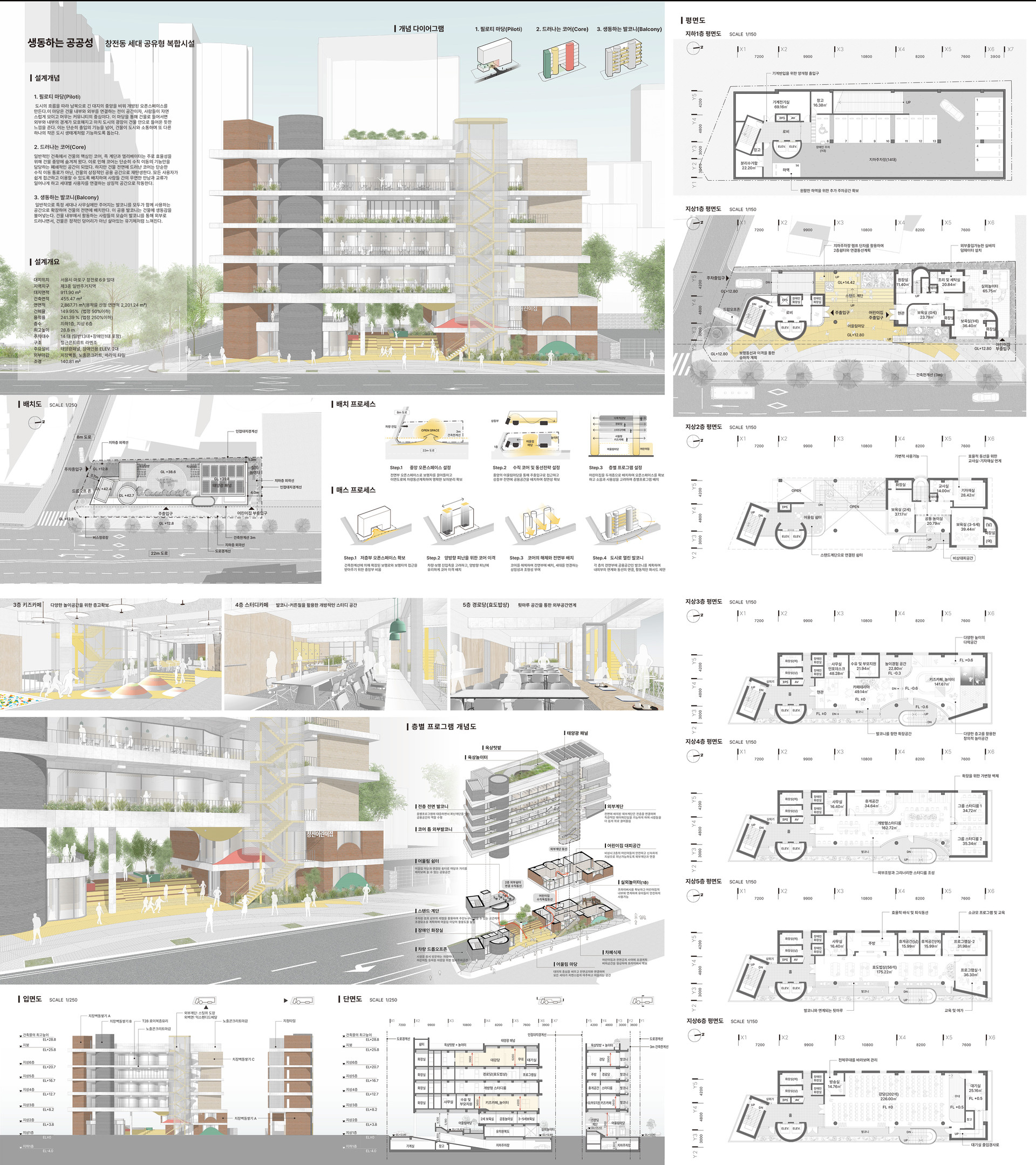 스럽게 모이고 머무는 커뮤니티의 중심이다. 이 마당을 통해 건물로 들어서면