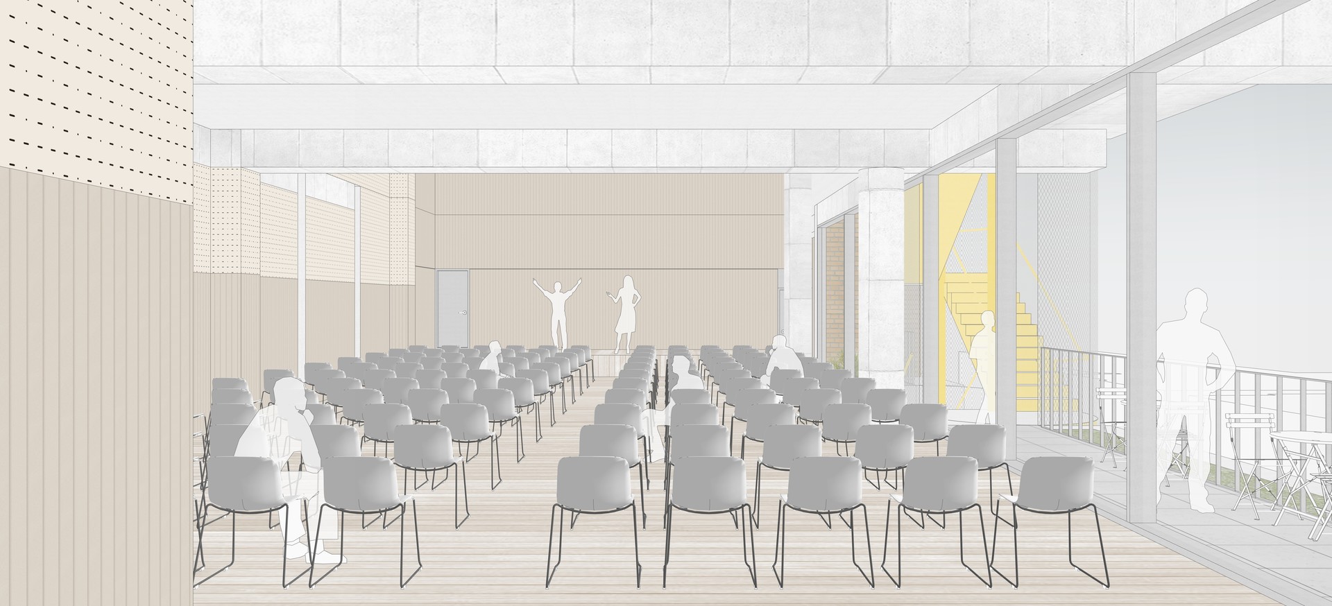 불어넣는다. 건물 내부에서 활동하는 사람들의 모습이 발코니를 통해 외부로