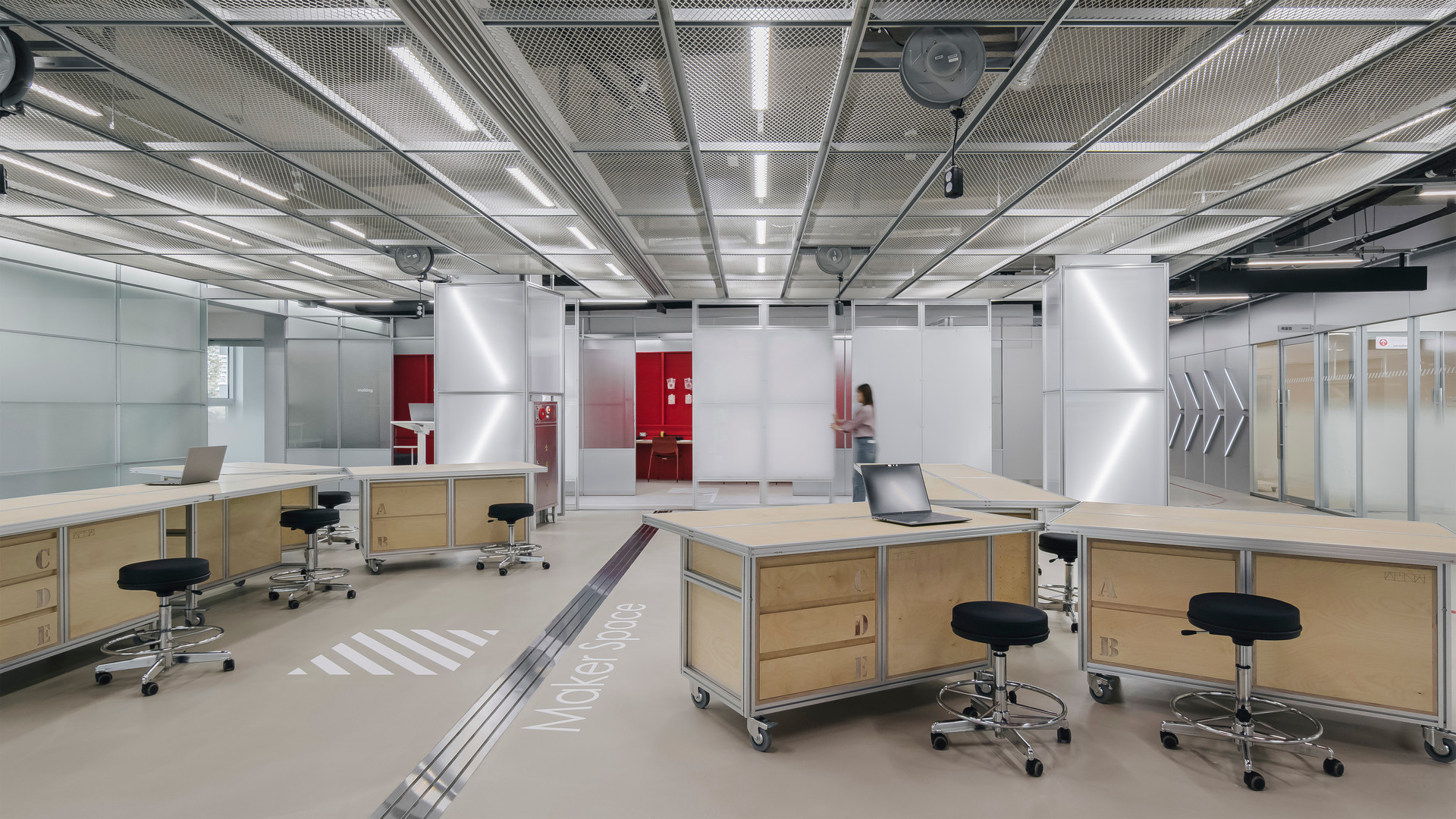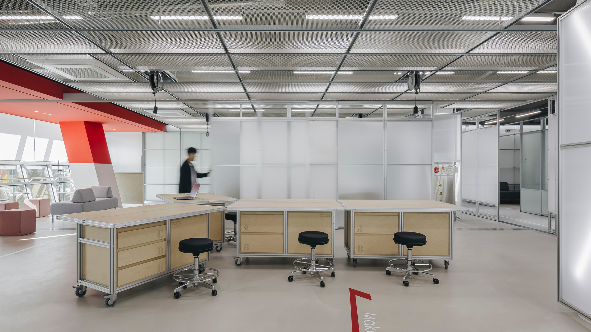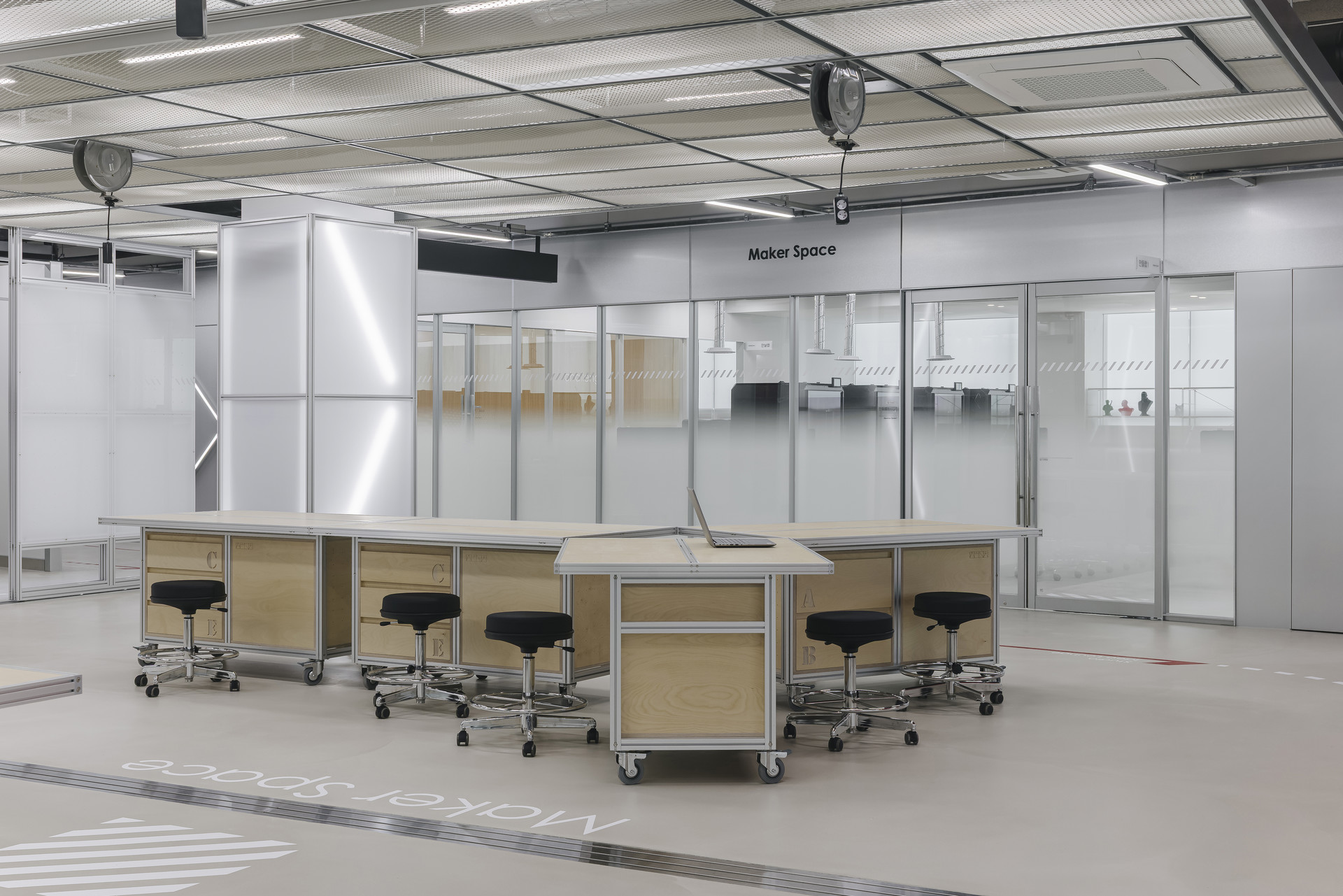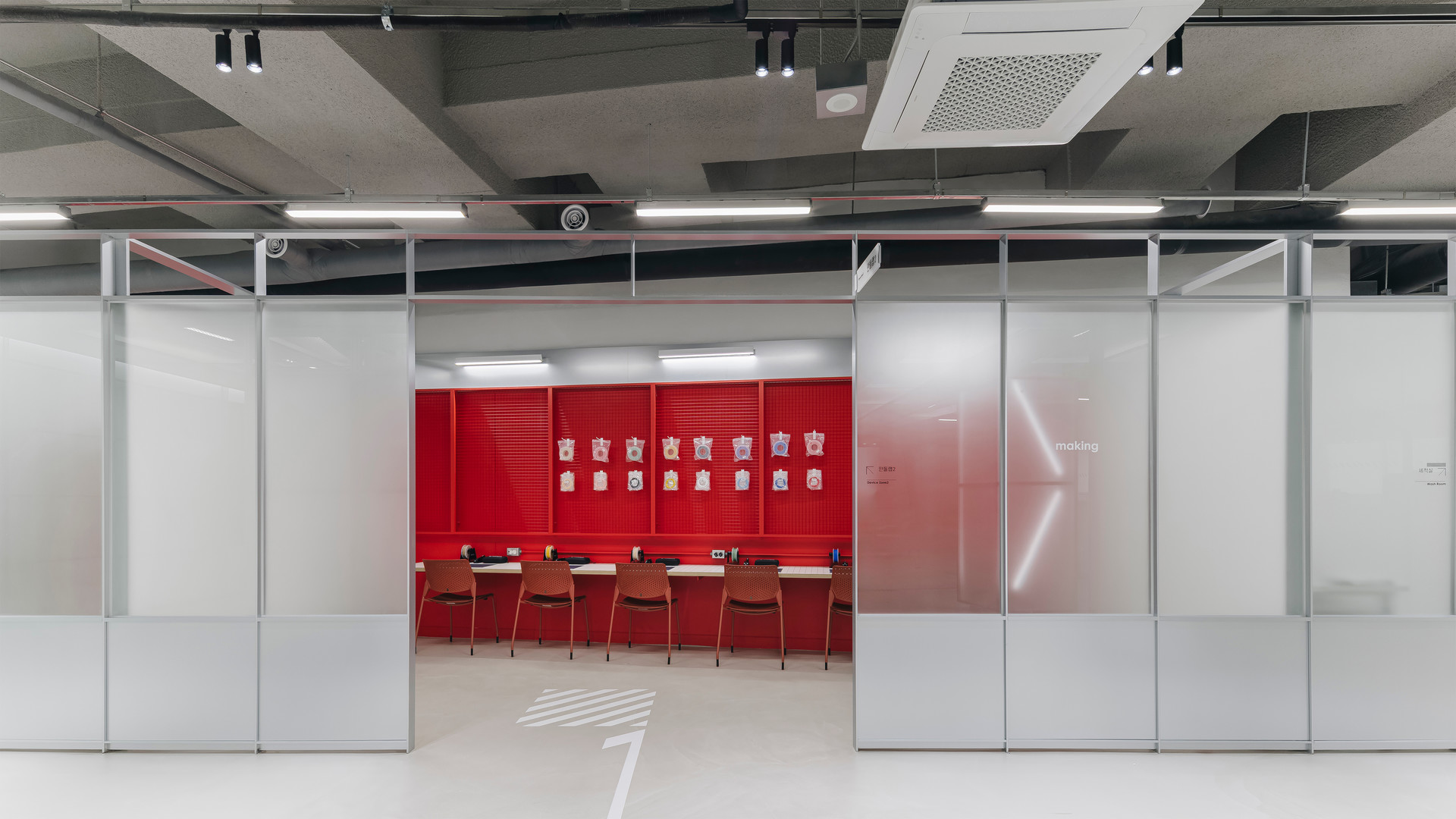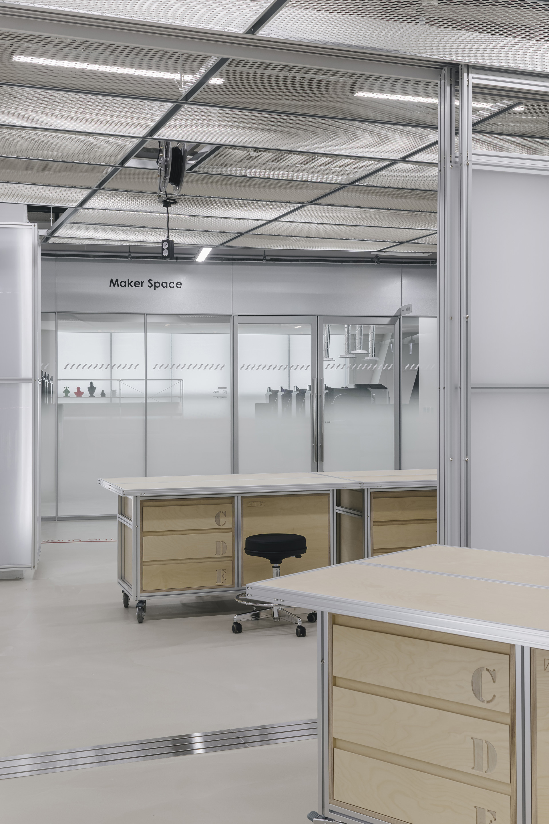 이천청소년 문화센터 인재육성동의 기존 메이커스페이스는 구획된 공간들이 단순히 나열된 형태였습니다. 하지만 청소년의 미래를 위한 공간은 단순히 기자재를 두는 것에 그치지 않고, 무언가를 만들고, 완성하고, 실패하는 모든 '과정'을 담아내야 합니다.
