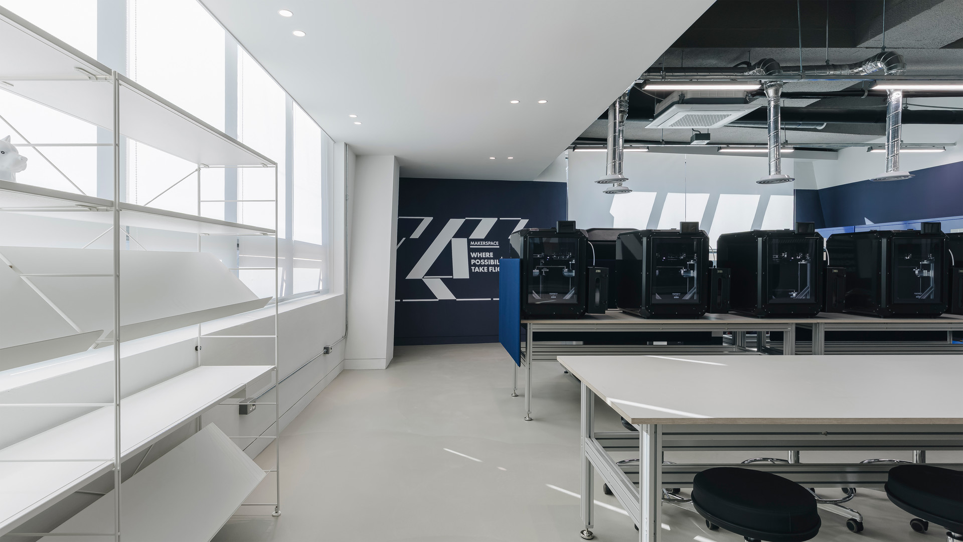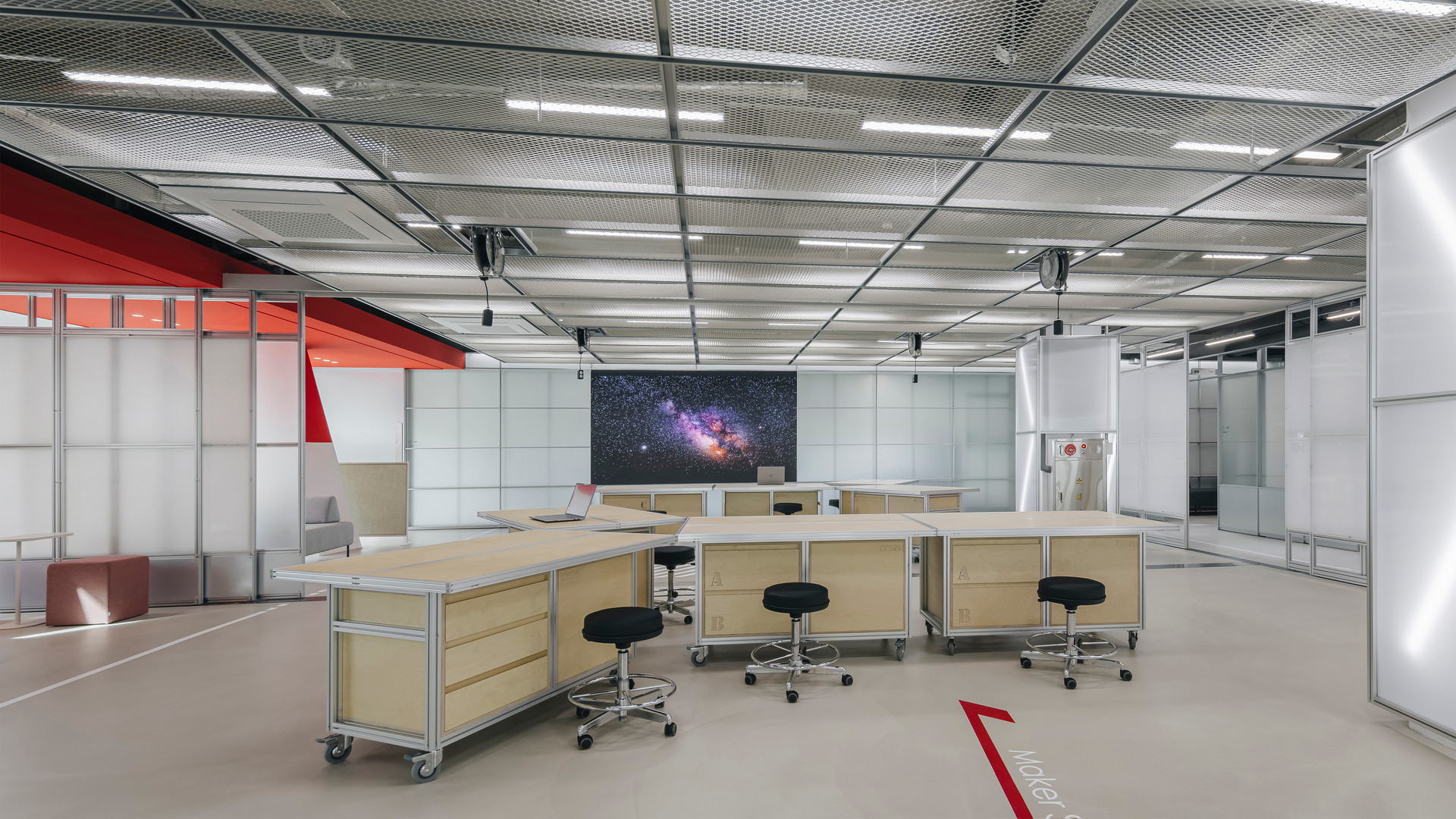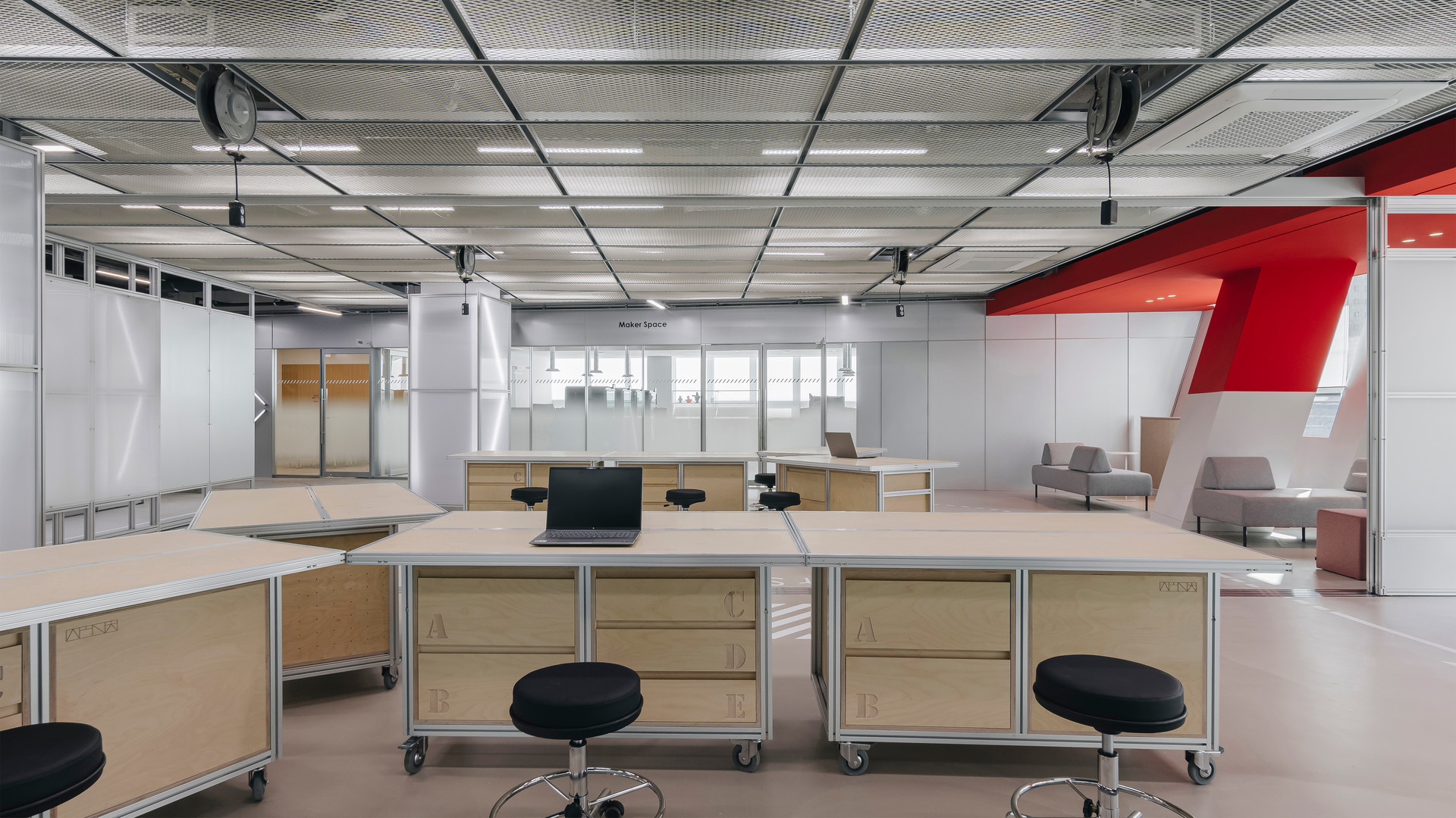 우리는 이 과정을 **Thinking(사고) - Searching(탐색) - Making(제작) - Testing(실험)**으로 정의하고, 이에 부합하는 공간을 제안했습니다. 각 단계의 특성에 맞는 면적을 부여하고, 공간 간의 유연한 흐름을 고려해 가변적인 요소를 적용했습니다. 무엇보다 이용자인 청소년의 행동 특성을 반영한 가구 배치와 공간 분할, 그리고 '자율성'이 설계의 핵심 기준이 되었습니다.