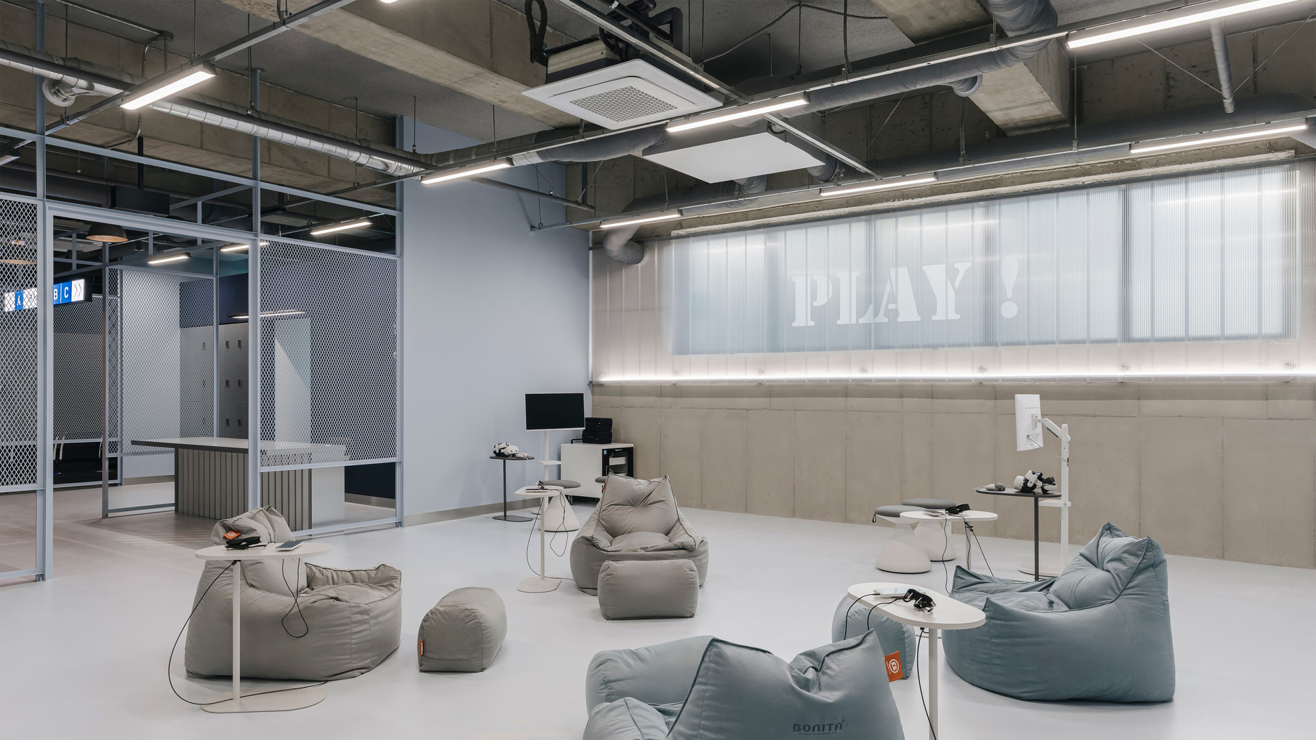 반응형 기기 존: 신체를 자유롭게 움직이며 즐길 수 있도록 장애물이 없는 대공간으로 계획.